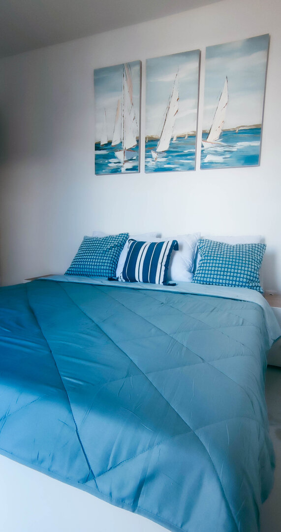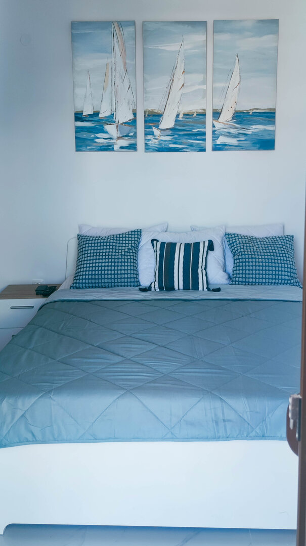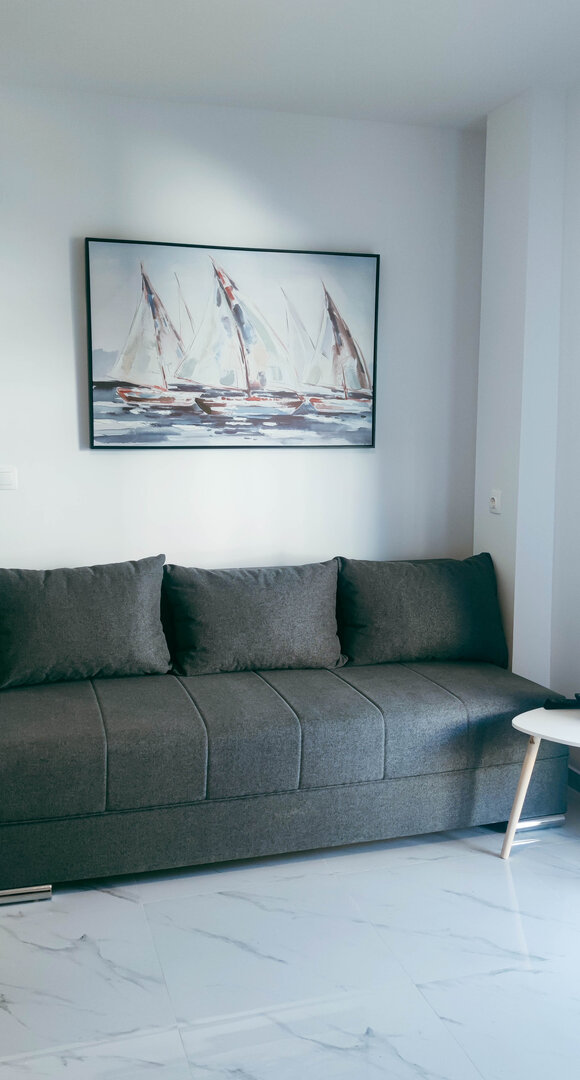Poseduje bračni krevet, sofu i dodatni ležaj.